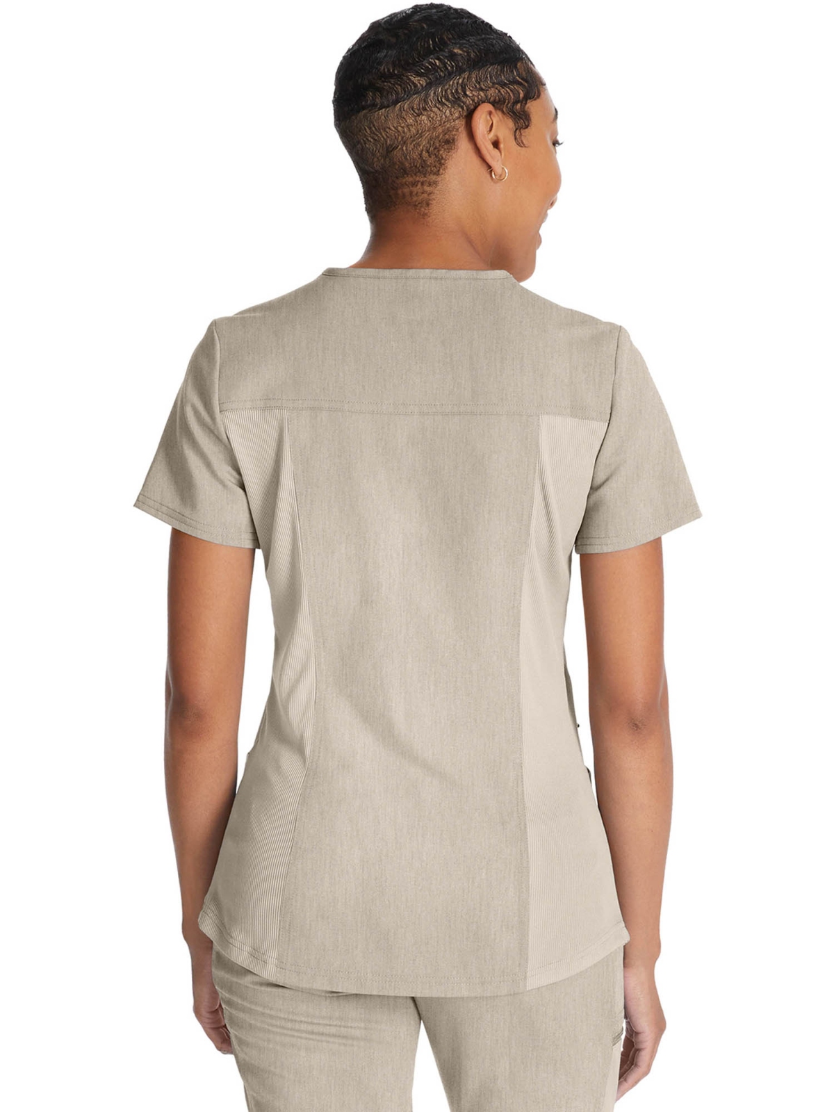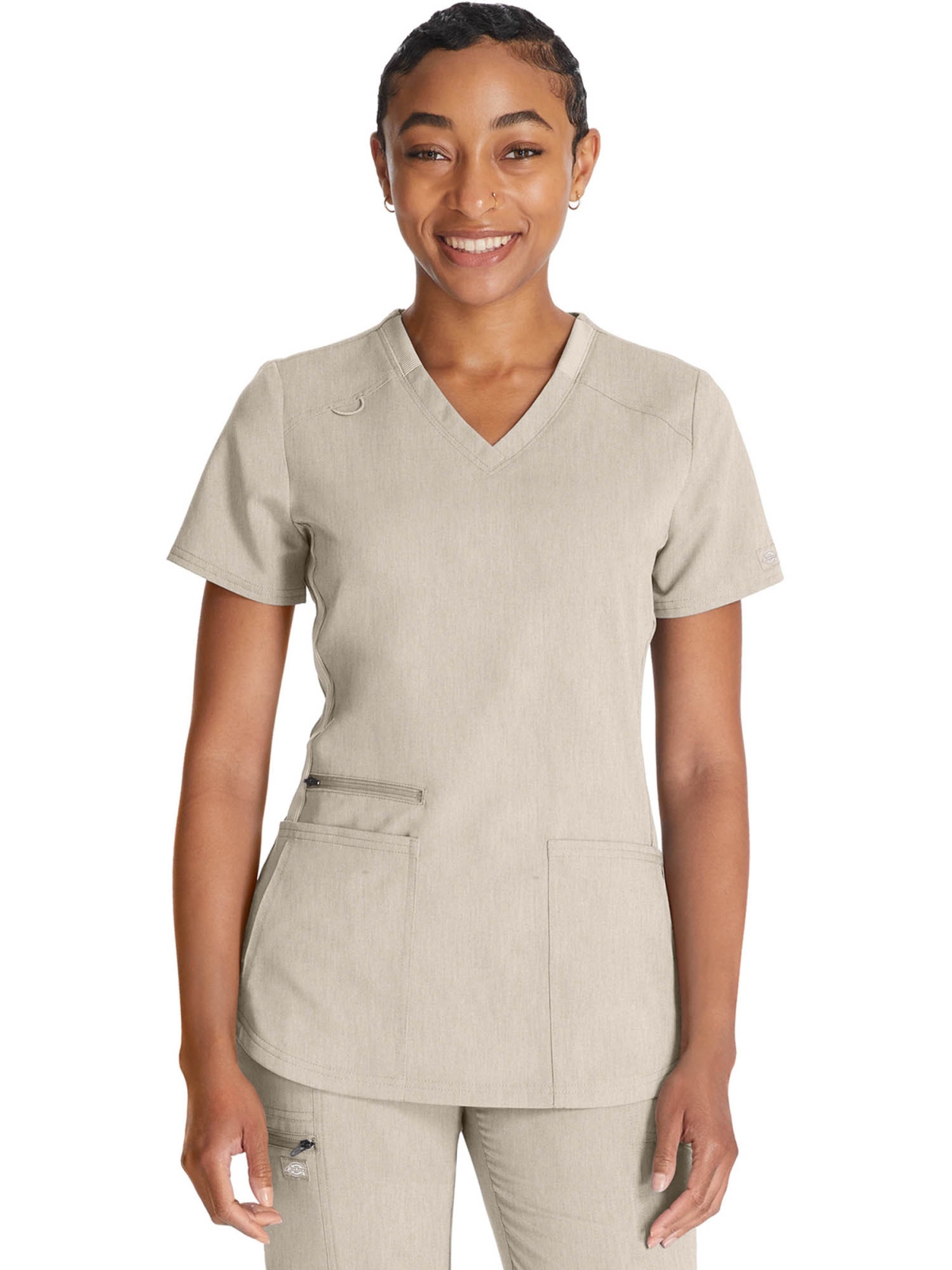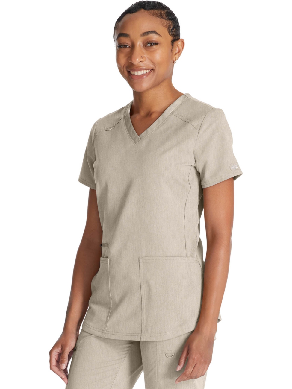 Bluza z kolekcji Dickies Balance to propozycja dla kobiet, które cenią profesjonalny wygląd i komfort w pracy. Fason Contemporary Fit z dekoltem w serek i krótkim rękawem zapewnia nowoczesny, dopasowany wygląd, a elastyczne panele z dzianiny z przodu i z tyłu gwarantują pełną swobodę ruchów.