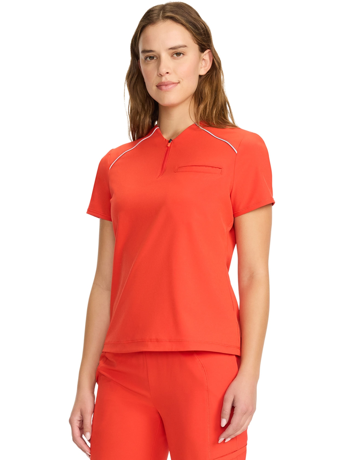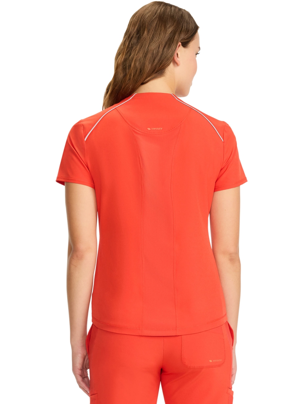 Bluza medyczna Infinity GNR8 Henley to nowoczesny fason z częściowym zamkiem i kontrastowymi detalami. Elastyczna tkanina zapewnia pełen komfort i swobodę ruchów, a dopasowany krój sprawia, że wygląda stylowo zarówno luźno, jak i wpuszczona w spodnie.