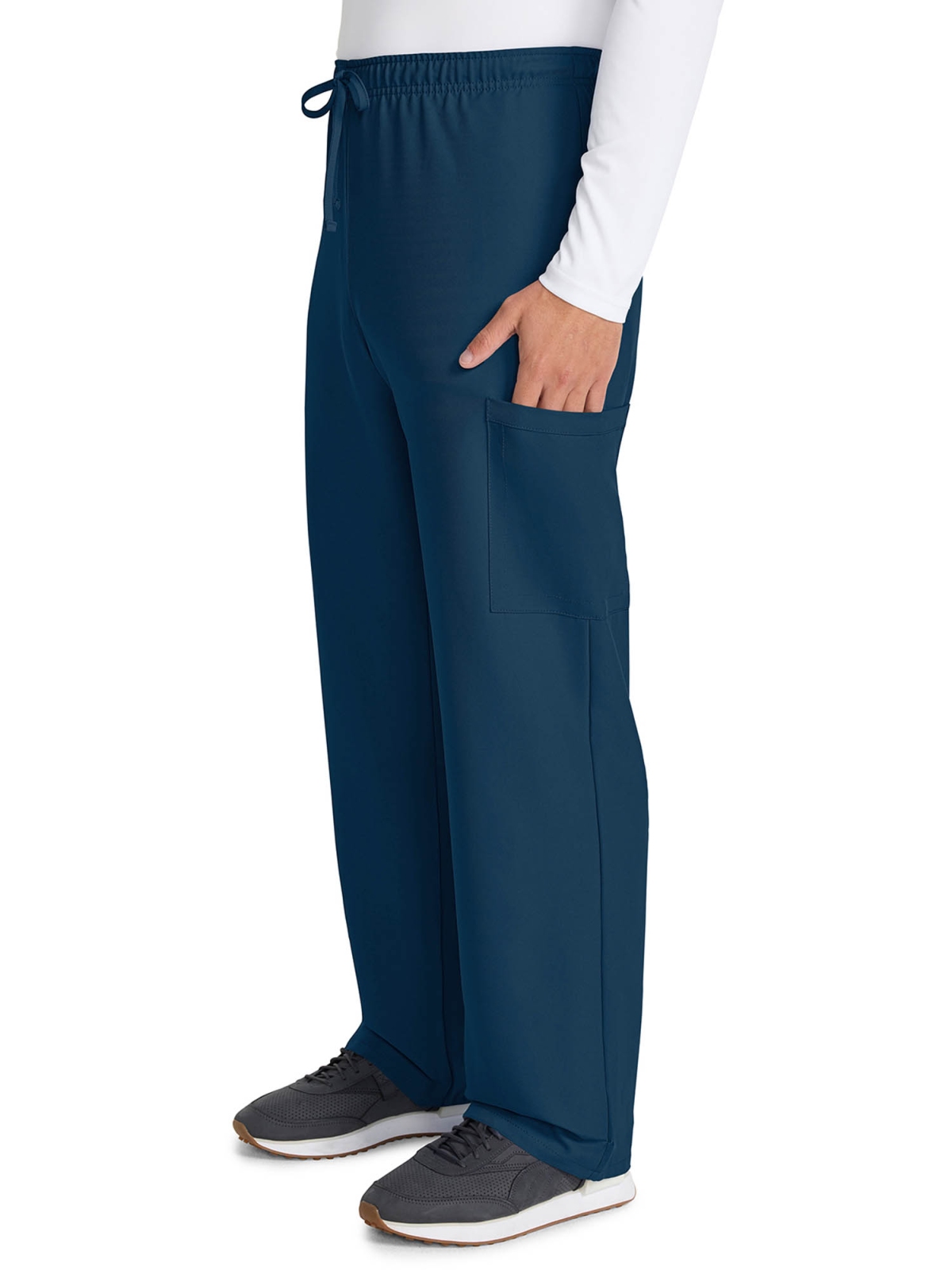 Średni stan i elastyczna konstrukcja w pasie zapewniają wygodne dopasowanie, a prosta nogawka daje swobodę ruchów przez cały dzień. To uniwersalne spodnie, które sprawdzą się zarówno w damskich, jak i męskich stylizacjach medycznych.